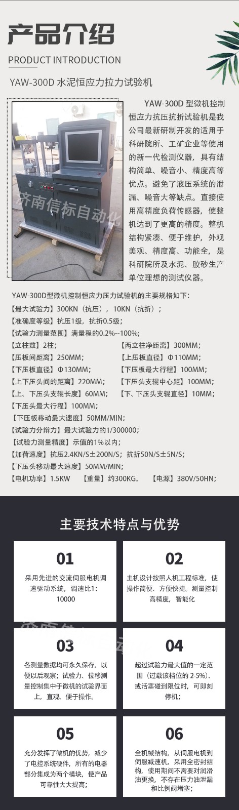 液壓式壓力試驗機YAW-300D微機控制恒應力抗壓抗折試驗機
