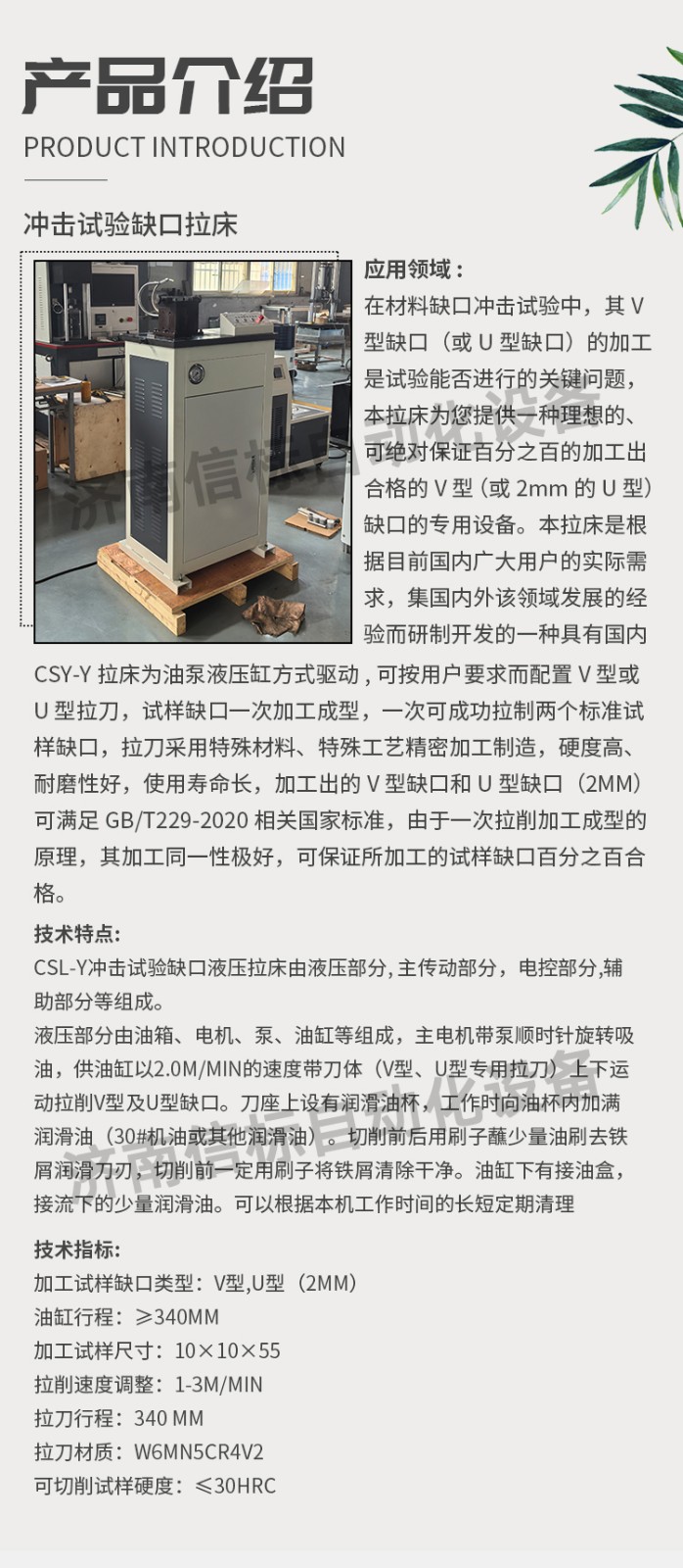 UV-2Y 沖擊試樣缺口液壓電動拉床