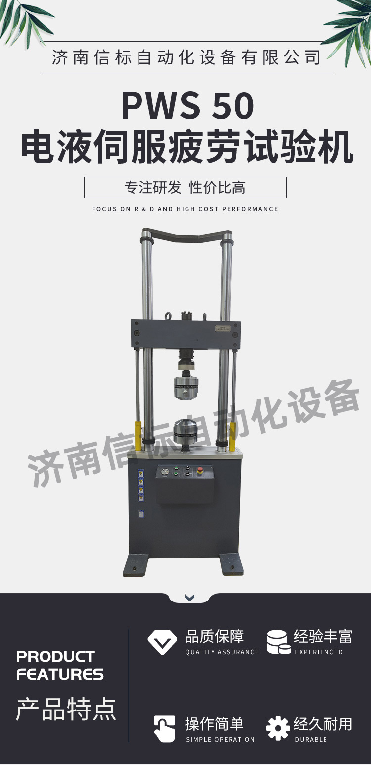 濟南信標自動化設備有限公司主要生產:動靜態萬能疲勞試驗機,接骨板彎曲試驗機,縫合線拉伸疲勞試驗機,髖膝關節磨損試驗機,電子萬能試驗機、液壓萬能試驗機、巖石三軸、四軸,電液拉力試驗機,材料試驗機,高低溫蠕變,高低頻疲勞,拉伸、扭轉、杯突等二十多個系列兩千多個的品種。